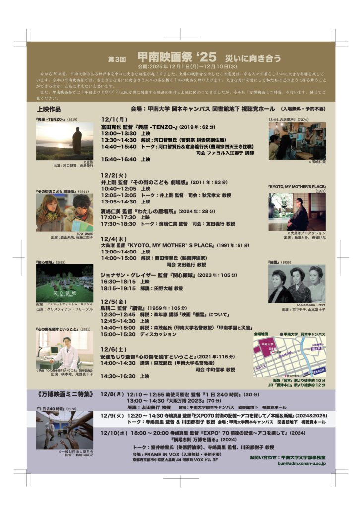 12月9日(火) 甲南大学 岡本キャンパス 図書館地下 視聴覚ホール