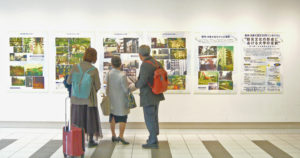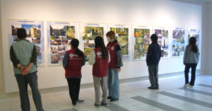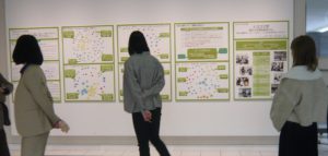 また、シンポジウム会場のすぐ外にある「甲南大学ギャルリー・パンセ」では、震災を知らない学生たちが親世代から震災の記憶を継承するために行ったアンケート調査のポスター発表と、甲南学園の被災と復興の記録写真の展示が同時開催され、来場者はそれらも合わせて観覧することができました。