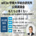 2026/01/22お知らせ第83回甲南大学総合研究所 公開講演会「私たちは悪くないー日本企業における道徳的不活性化の研究ー」開催<2/28> -