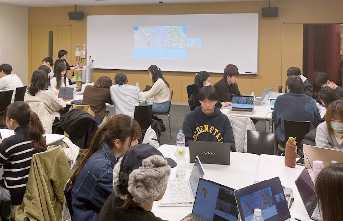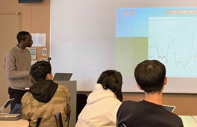 学生一人ひとりがアフリカの一か国を担当し、経済成長と格差、貿易とグローバル化、紛争と移民、金融とデジタル化などの側面から、国際機関のデータを用いて現状を把握。その後、興味をもったテーマでグループを作り、日本の政府や企業が援助や投資を通して、アフリカ諸国とどのような共存共栄ができるかを検討します。データから問題点を浮き彫りにし、実態を知る専門家から考えが正しいのかを確認してもらう中で、多面的なものの見方を身につけていきます。
