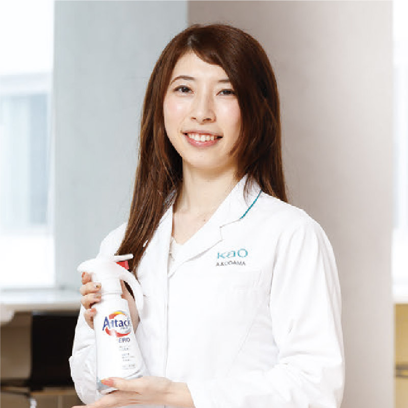 研究開発者であった祖父への憧れもあり、将来は研究者になりたいと思い、フロンティアサイエンス学部に入学しました。学部では1年次から本格的な実験に取り組みましたが、研究室の配属前に、早くから実験が経験できるのは、他大学にはない唯一無二の魅力だと思います。在学中には専門家への研究発表だけでなく、一般の方向けに研究展示会を実施する機会もありました。普段から多様な商品を使用している方々から、生活者目線のコメントをいただけたことは良い刺激になりました。また、より多くの方に役立つ商品を提供する技術開発がしたいと思うようになりました。今は、花王株式会社のハウスホールド研究所で洗濯洗剤の開発を行っていて、研究者になるという夢を実現できました。商品をご使用いただいた方の、嬉しそうな表情を見ることにやりがいを感じ、商品開発に取り組んでいます。これからも、甲南大学で培った学びを生かし、人々により快適な生活を届けられるよう努力していきたいです。