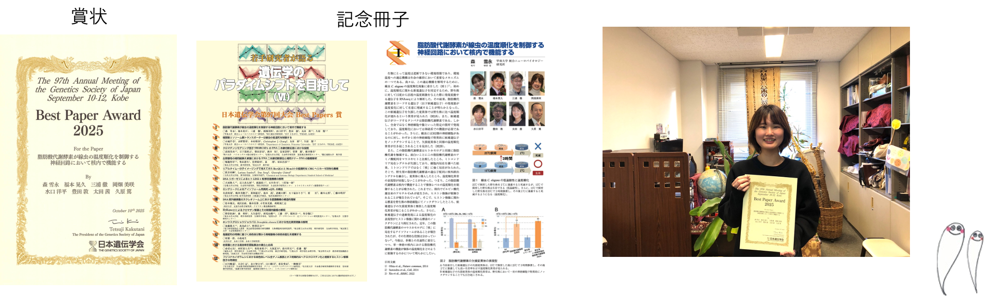 2025年秋に行われた第97回 日本遺伝学会年会の口頭発表の中から、特に優れた演題に対して今月、賞状と記念冊子が贈られました。
