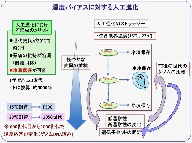 太田 茜 特任研究准教授は「種が進化する際の復元を経た多様性獲得のマルチモダリティ」というテーマで、甲南大学生物学科の学生と約15年かけて作成した1000世代分の線虫C.elegans 冷凍保存群を駆使して、(1)長期における温度適応の多様性の獲得と、(2)一時的な局所期間での表現型の復元について、ゲノム・エピゲノム・神経活動の多階層レベルで解析します。現在、神野靖也さん(修士院生)、藤澤みいな さん(4年生) と共同で研究を進めており、学生の研究結果も高く評価されました。