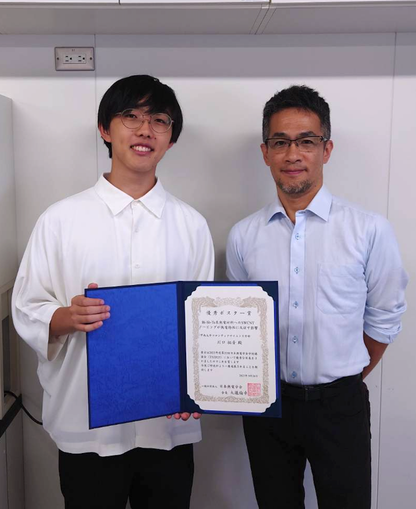 【フロンティアサイエンス学部】学部生4年の川口拓音さんが第22回日本熱電学会学術講演会において優秀ポスター講演賞を受賞しました!