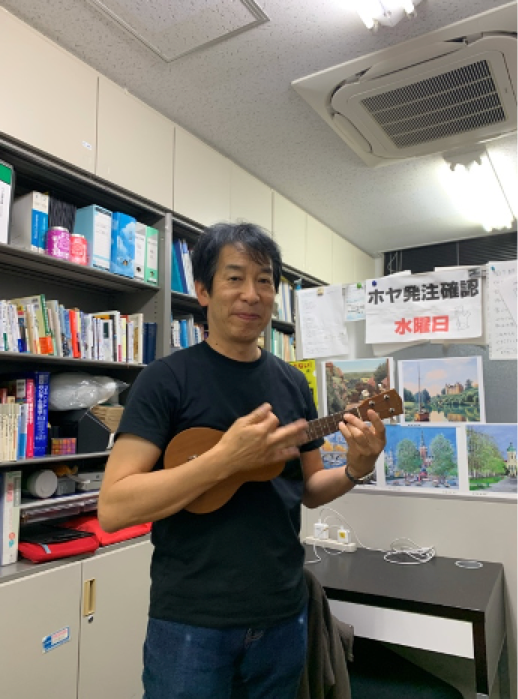 中学・高校は卓球部、大学では登山をしていました。最近も月に1、2回ほど週末に神戸市や灘区、東灘区の卓球の試合に出ています。たまに山歩きもしています。神戸は海と山が近く、六甲山にはいろいろなルートがあって、神戸という街がすっかり気に入っています。数年前、ウクレレサークルの学生さんに研究室でウクレレ教室を開いていただいて、それ以来、ウクレレの弾き語りも趣味に加わりました。研究室には、誰でもいつでも弾けるように、メンバー共通のウクレレがあります。