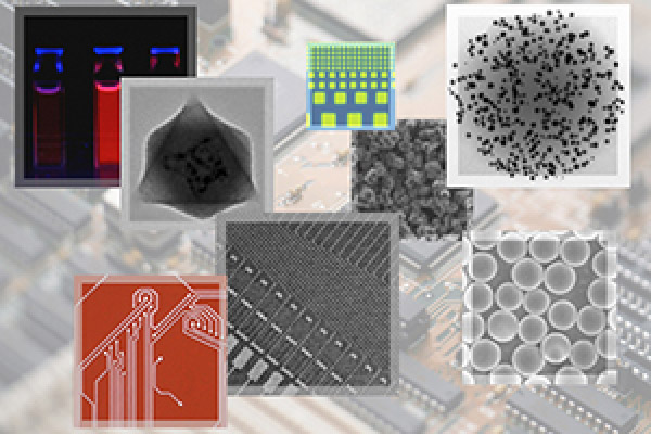 ナノサイエンスフロアには、機能システム化学、ナノ材料化学、無機光化学を専門とする3つの研究室があり、サイズや形状を制御した機能性無機ナノ材料(金属錯体、金属・半導体ナノ粒子など)の精密合成や、それらと異種材料(有機分子、高分子、生体材料)との複合化、薄膜材料への機能性付与と回路基板の開発、およびセンサーや電子材料への応用などの研究に取り組んでいます。