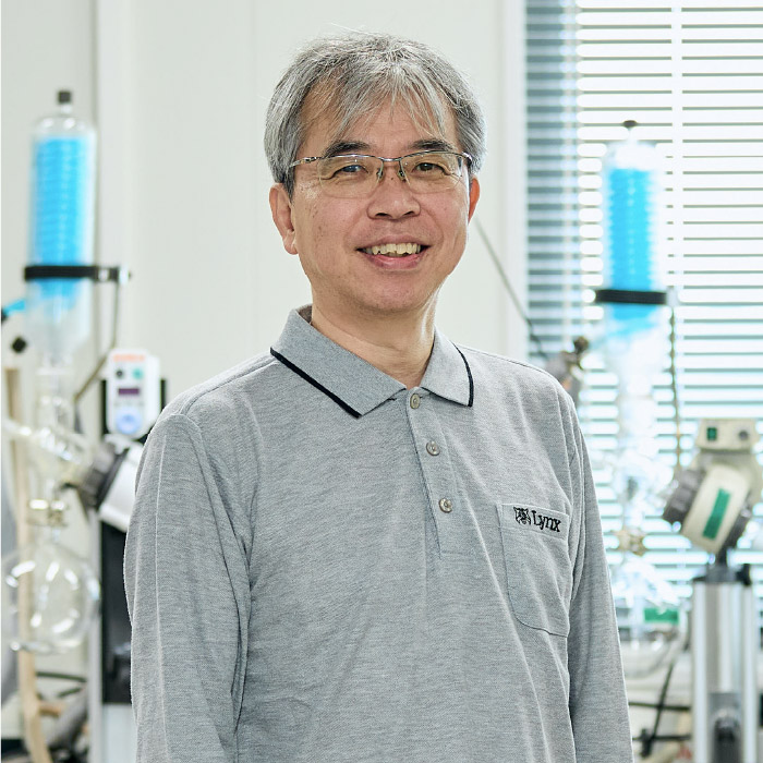 ケミカルサイエンスフロアには、生物有機化学、生物無機化学、有機合成化学、機能性高分子を専門とする4つの研究室があり、有機化学をベースに、人工酵素や凝集発光色素、診断用知的材料のような有用な機能材料の合成、高度医療診断システムの開発、環境センサーや天然素材を利用する機能性食品・化粧品の開発などの研究に取り組んでいます。