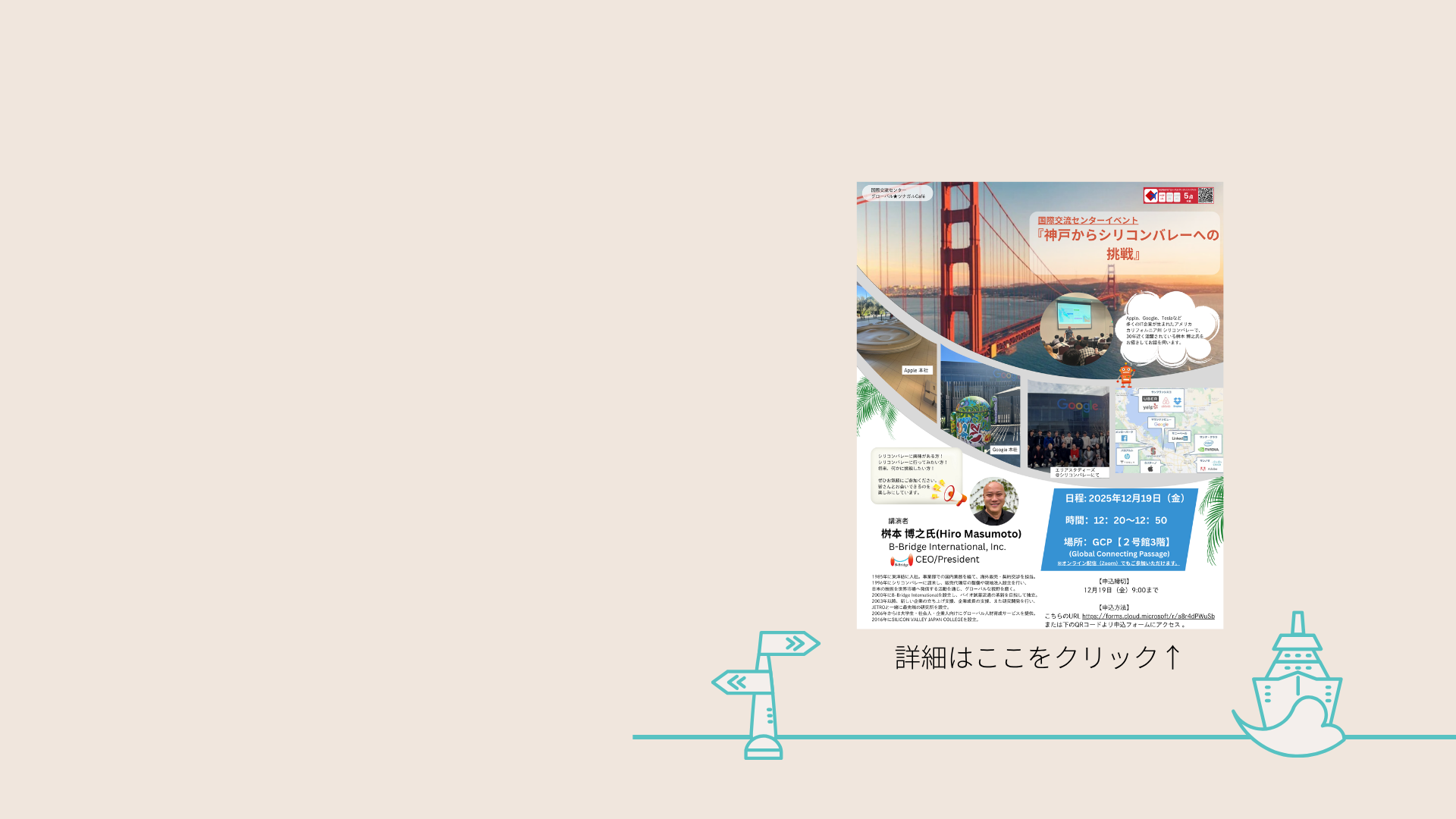 【イベントのご案内】12月19日(金)講演会『神戸からシリコンバレーへの挑戦』を開催します!お知らせ2025.11.17
