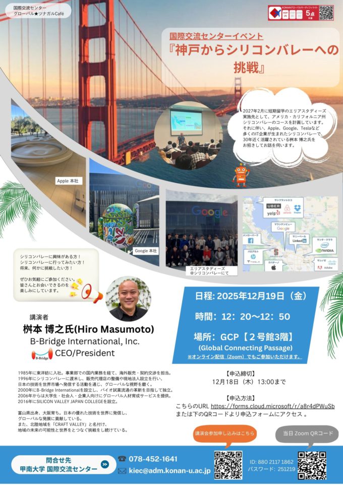 12月19日(金) 講演会『神戸からシリコンバレーへの挑戦』