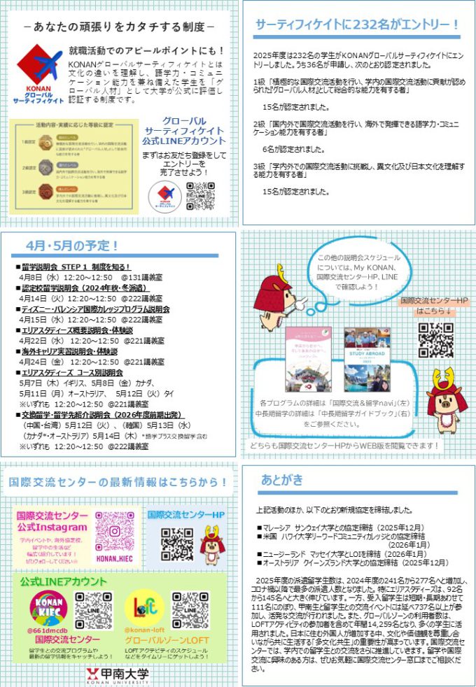 お知らせ 2026.3.26 KIT (Konan International Times) Vol.10 発行のお知らせ KIT (Konan International Times) Vol.10を発行しました! ↓クリックして拡大