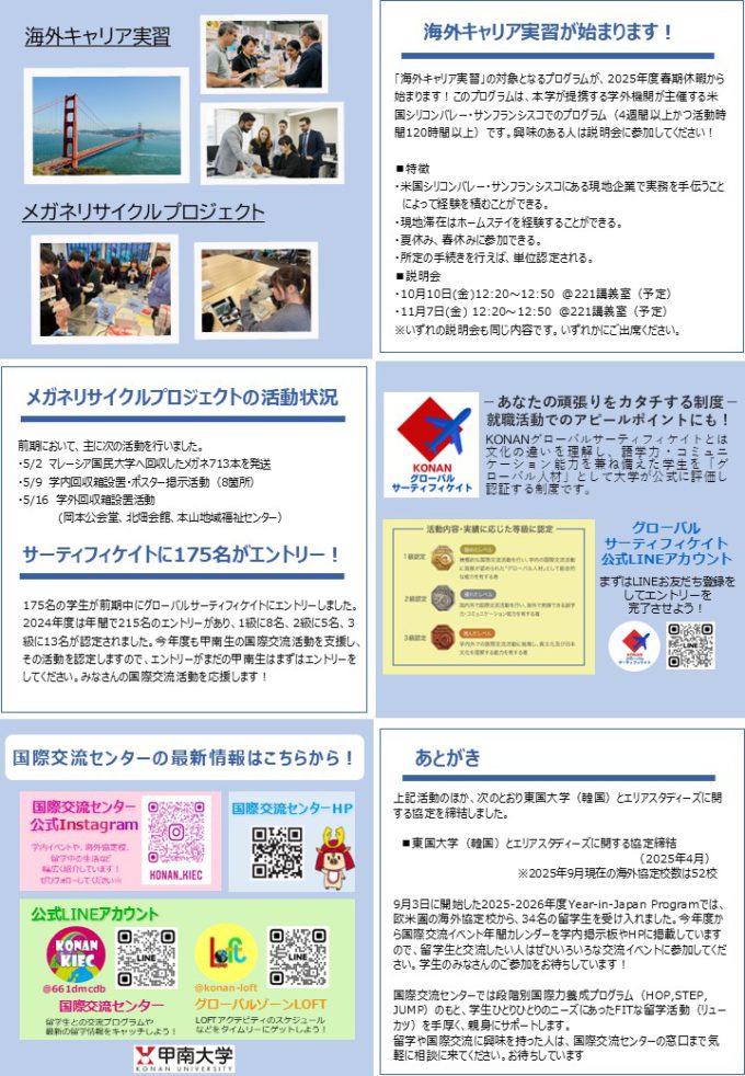 お知らせ 2025.9.29 KIT (Konan International Times) Vol.9 発行のお知らせ KIT (Konan International Times) Vol.9を発行しました! ↓クリックして拡大