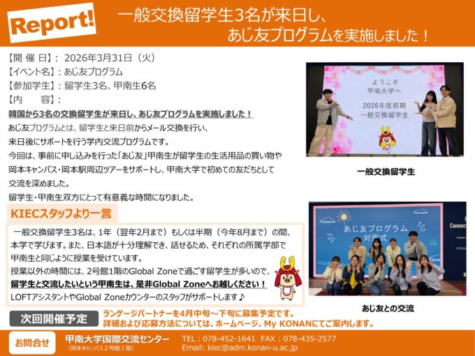 2026年度前期受入 一般交換留学生来日・あじ友プログラムを実施しました!
