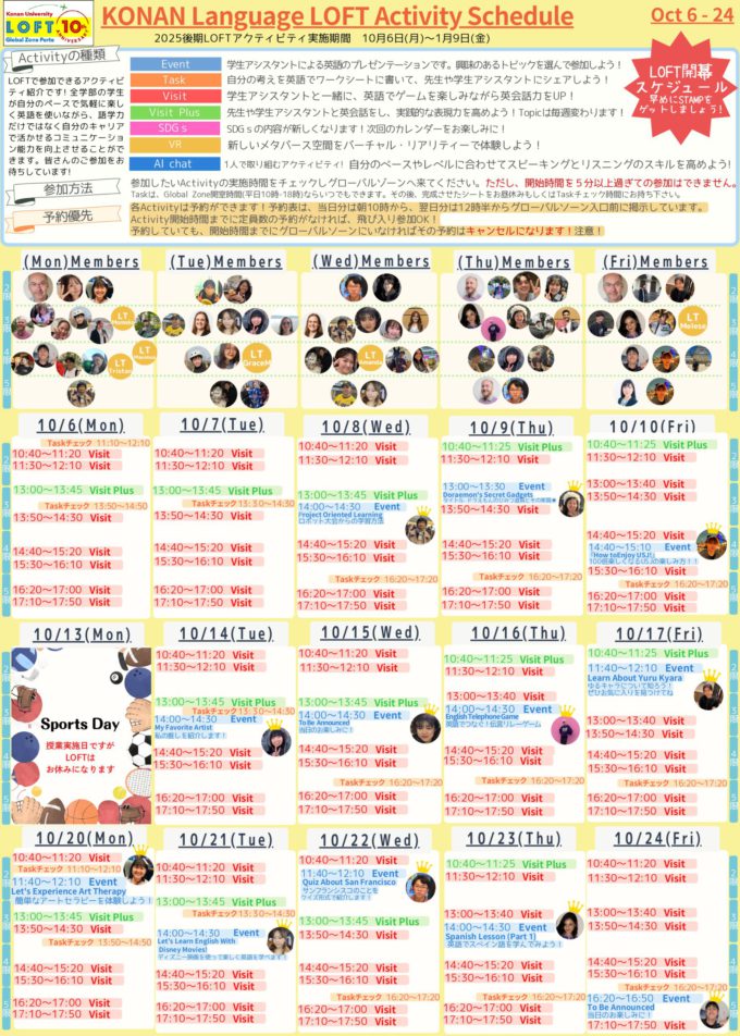 LOFT アクティビティ最新スケジュール(10/6~10/24)