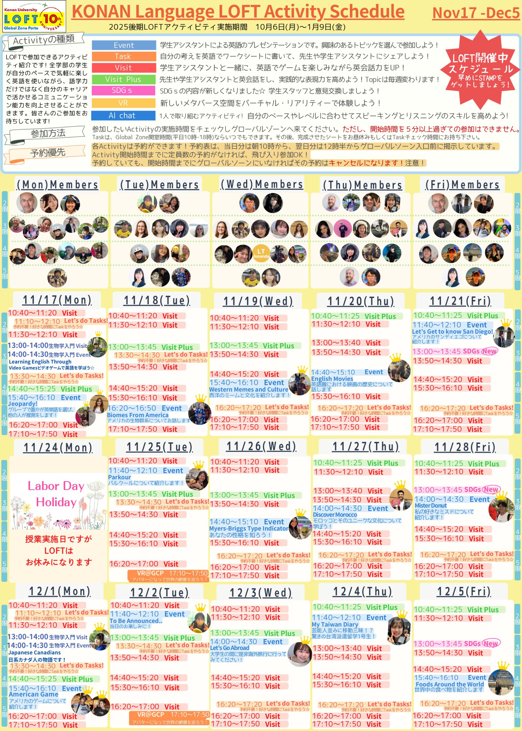 LOFT アクティビティ最新スケジュール(11/17~12/5)
