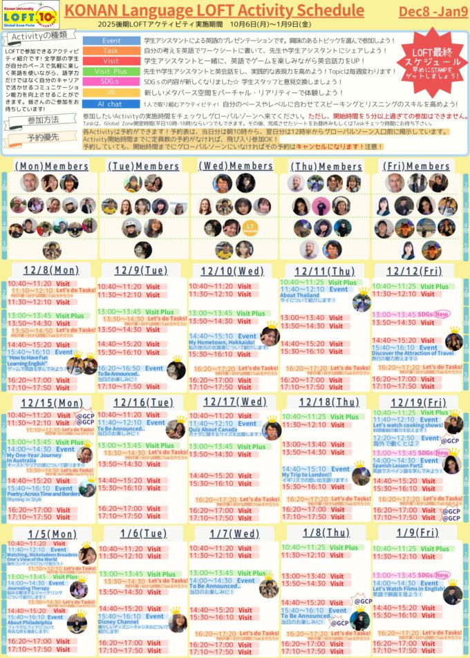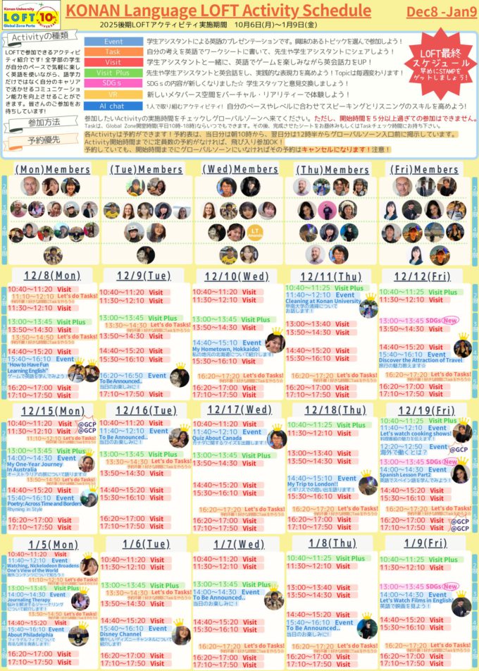 LOFT アクティビティ最新スケジュール(12/8~1/9)