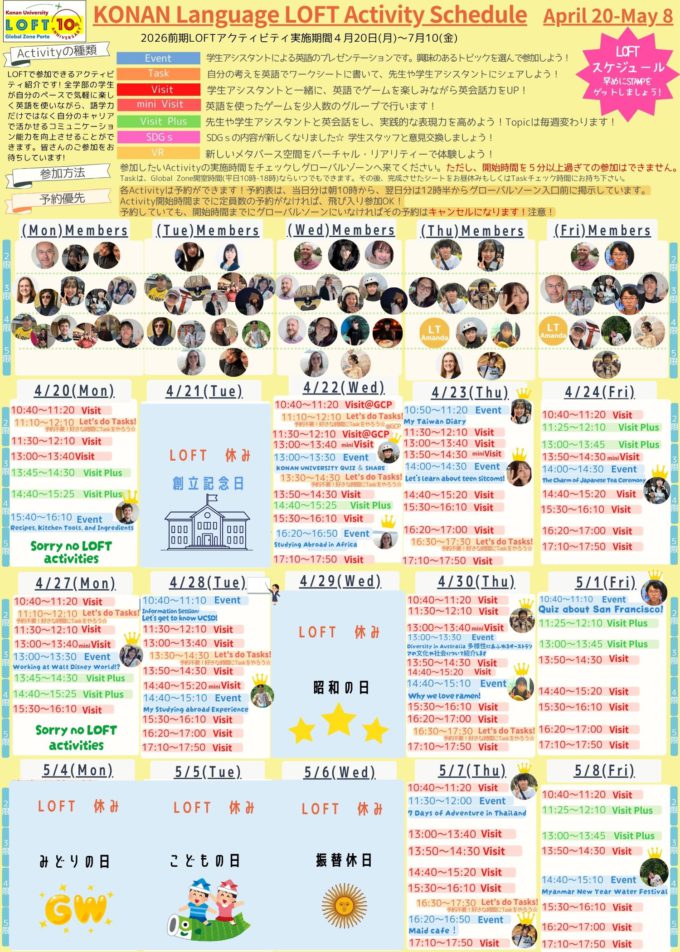 LOFT アクティビティ最新スケジュール(4/20~5/8)