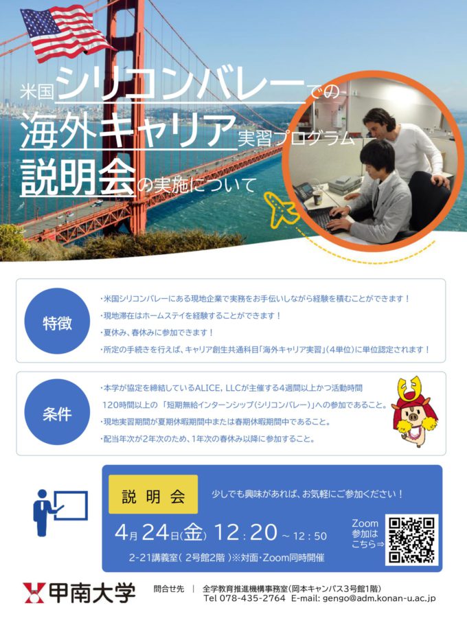 【お知らせ】4/24 海外キャリア実習説明会のご案内