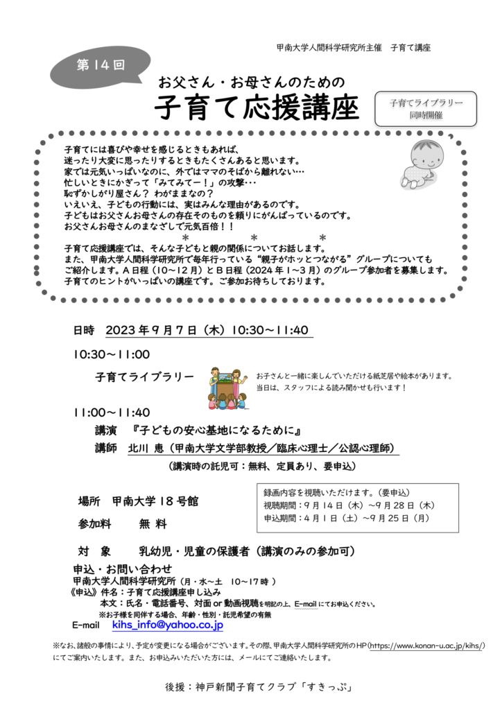 対象:乳幼児・児童の保護者(講演のみの参加可)