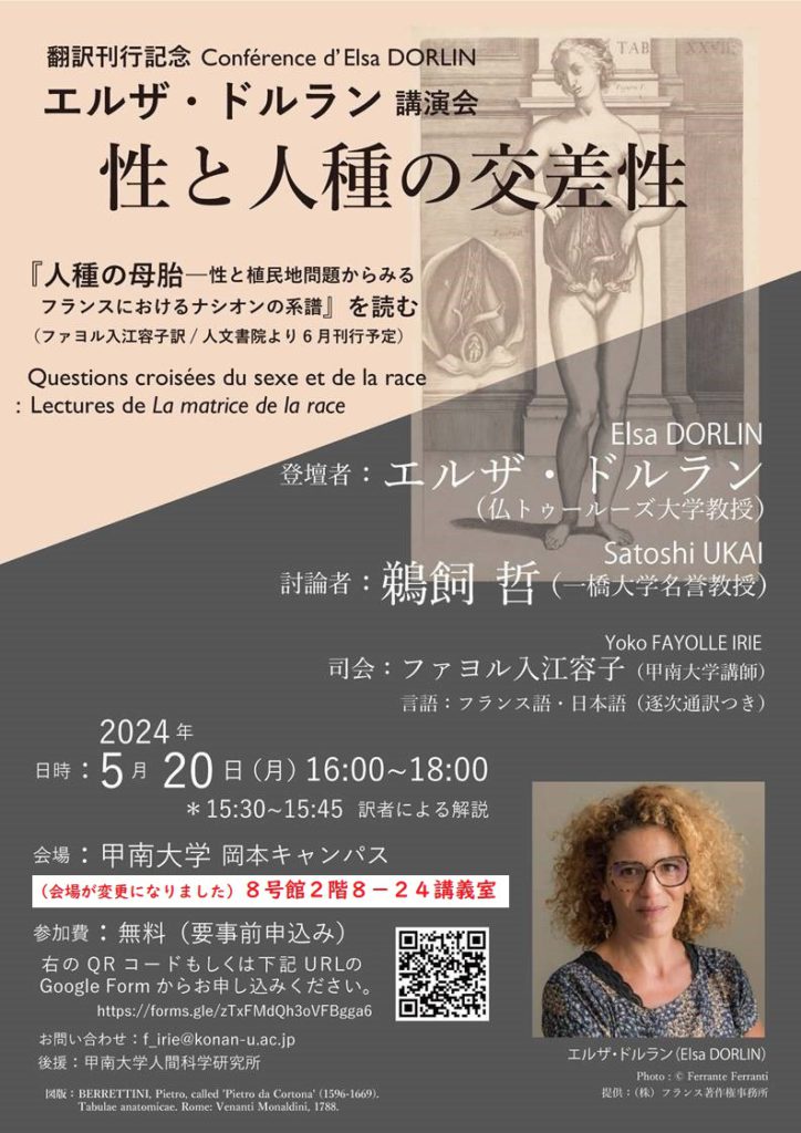 気鋭の哲学者エルザ・ドルラン(仏トゥールーズ大学)氏をお招きし、6月に翻訳刊行を控えた著書『人種の母胎――性と植民地問題からみるフランスにおけるナシオンの系譜』について、ご講演いただきます。