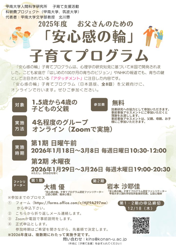 (「安心感の輪」子育てプログラム認定ファシリテーター/甲南大学人間科学研究所客員研究員/公認心理師)