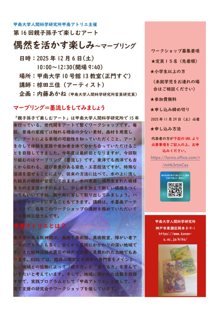 【問合せ】甲南大学 人間科学研究所:E-mail : kihs@ml.konan-u.ac.jp