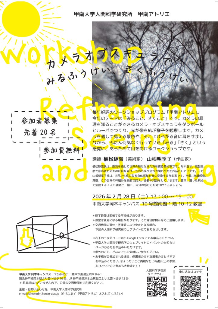ワークショップ 甲南アトリエ カメラオブスキュラでみるふうけい、きくふうけい