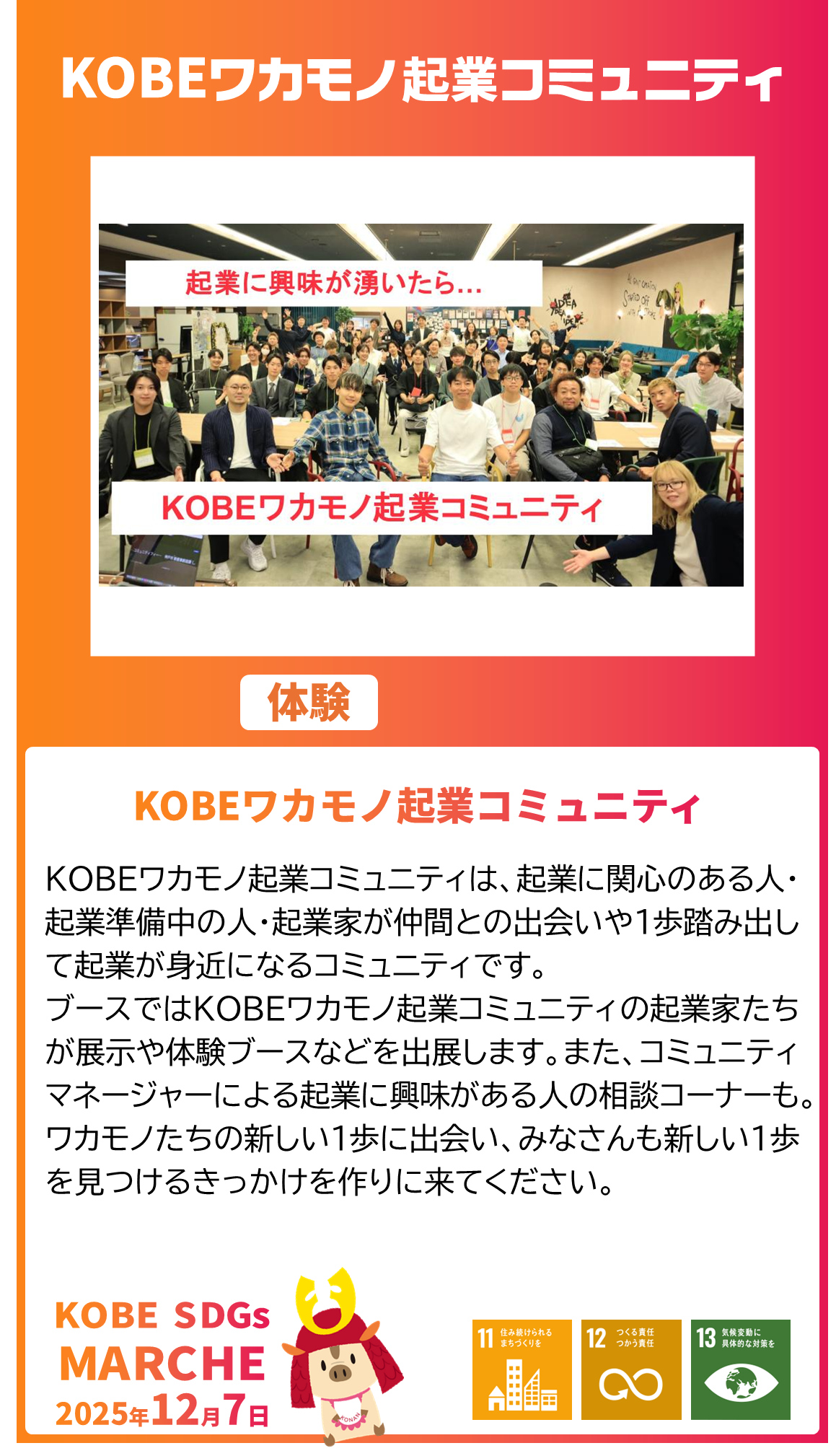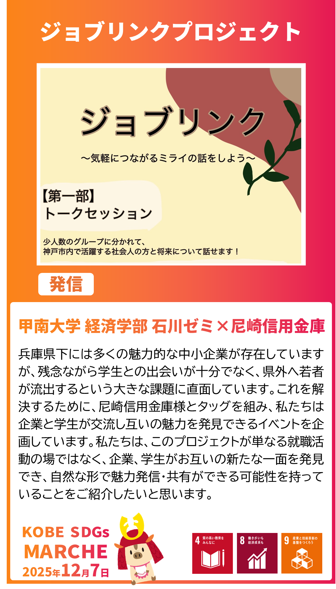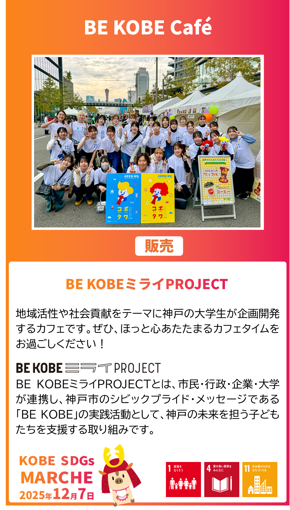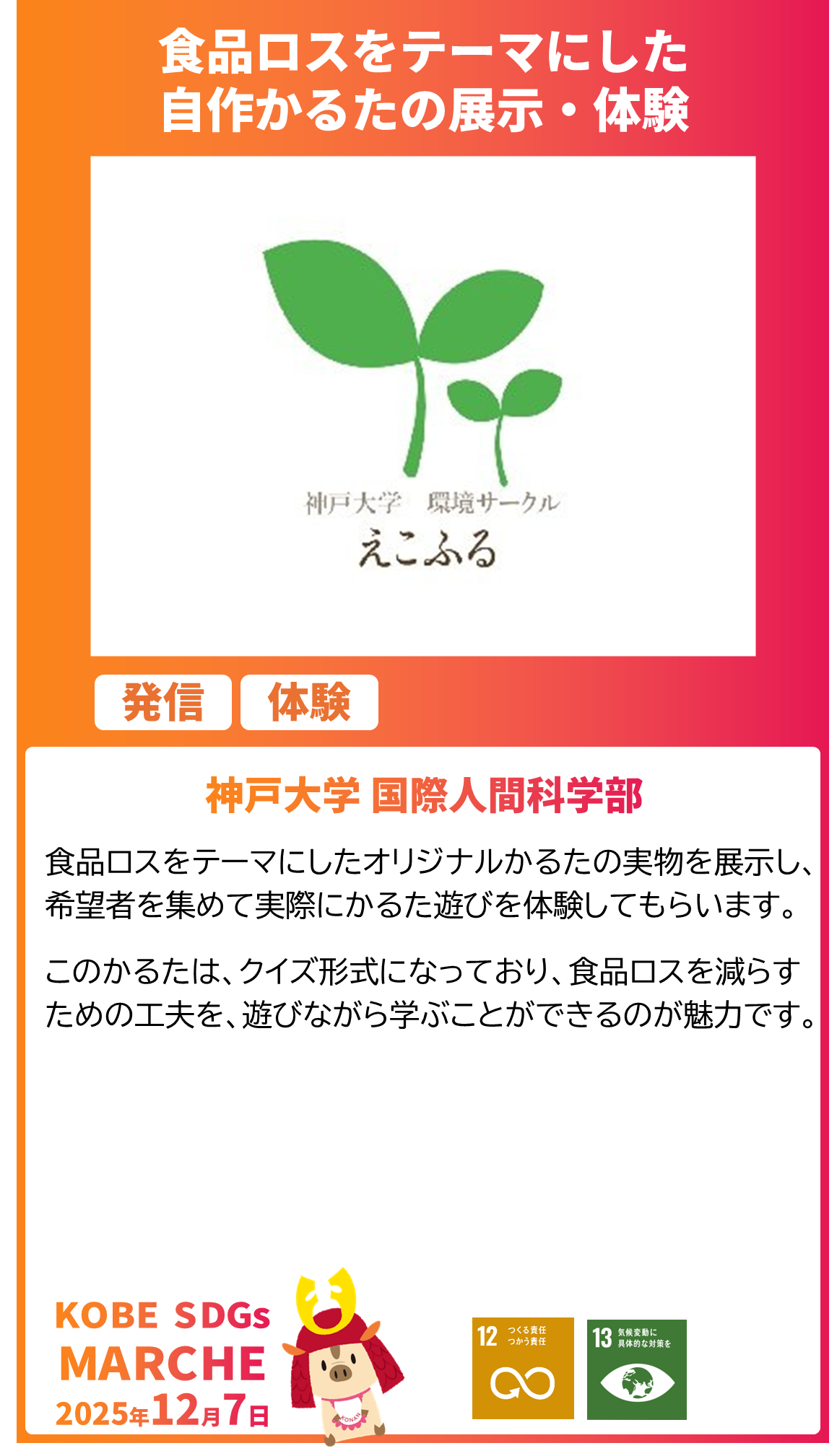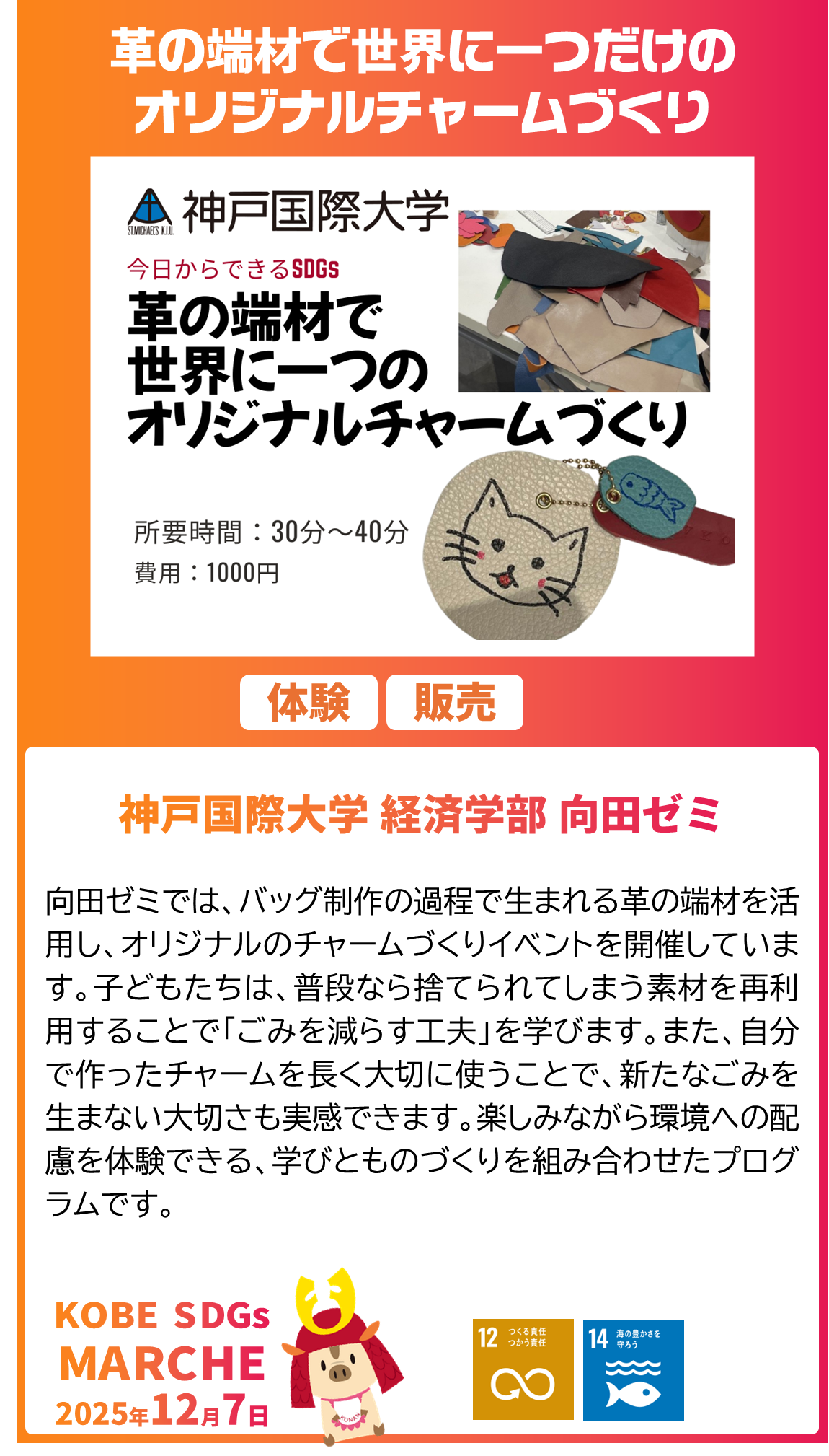 「大学都市KOBE SDGsマルシェ」は、神戸市内の大学・企業・団体で展開される多彩なSDGsチャレンジを集結させ、