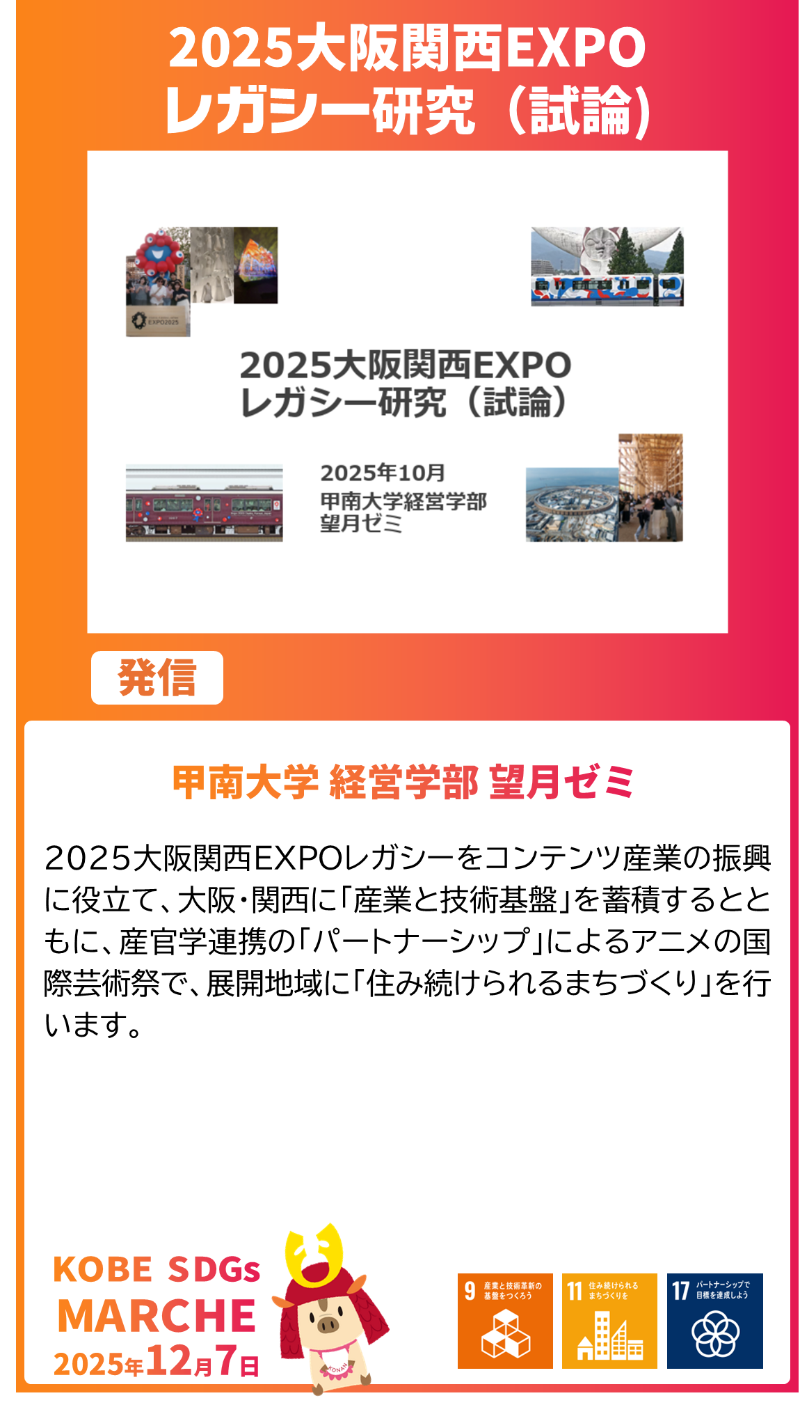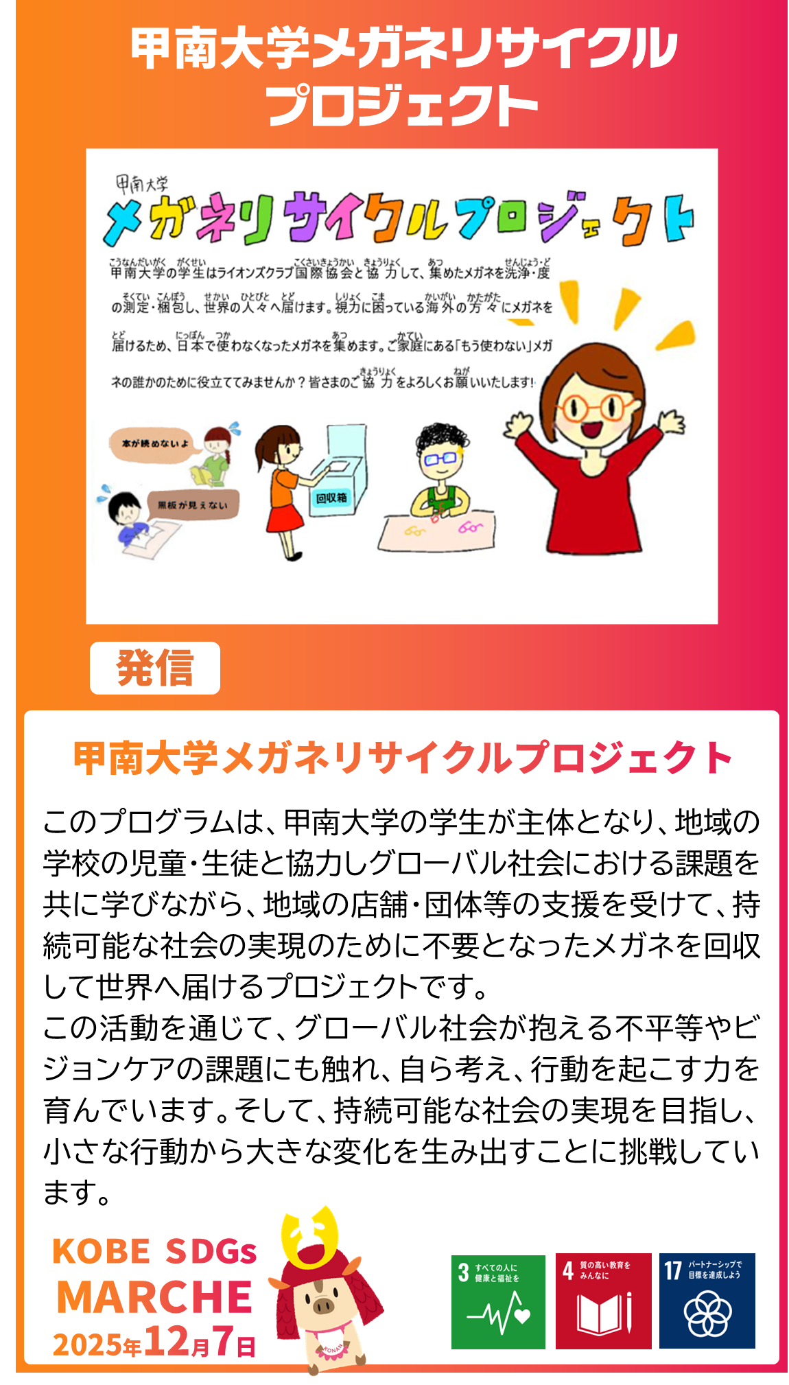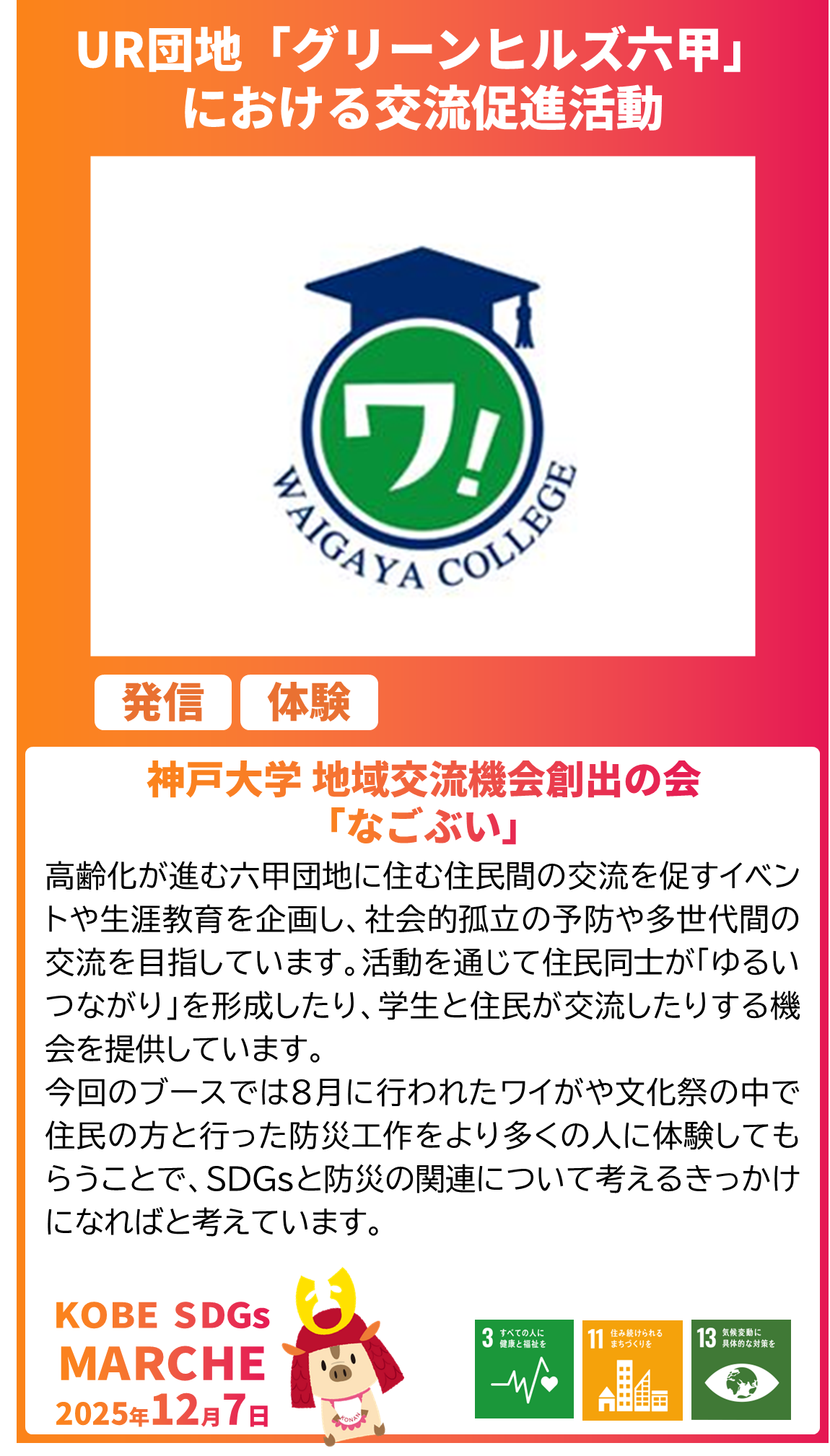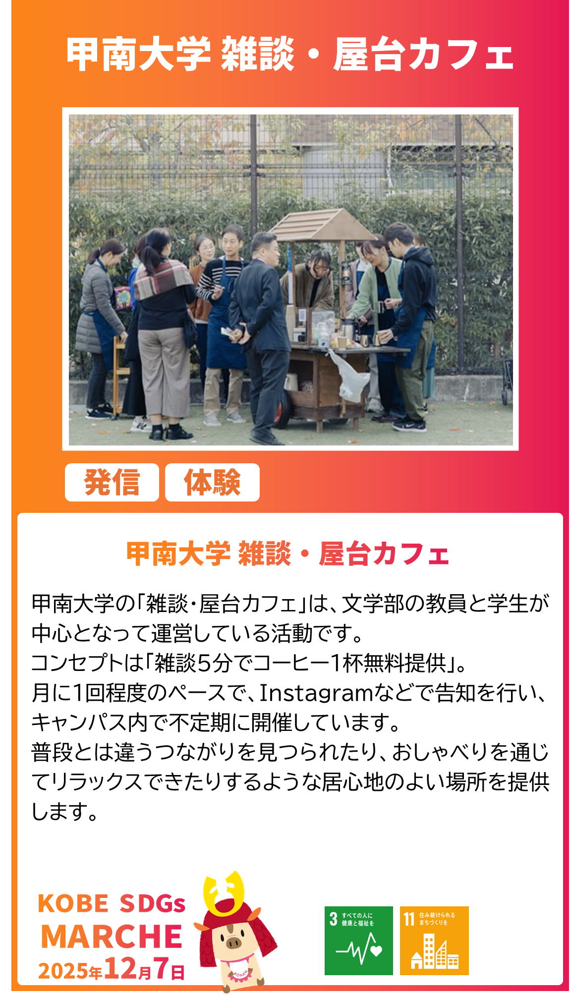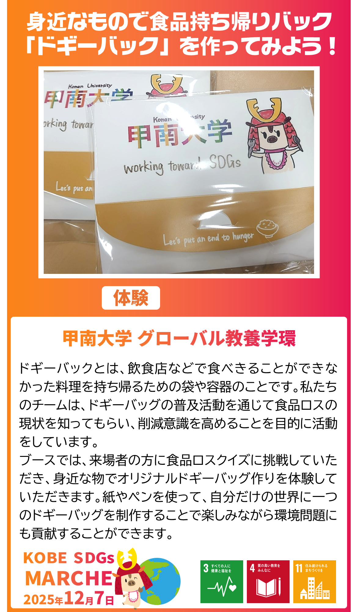 「大学都市KOBE SDGsマルシェ」は、神戸市内の大学・企業・団体で展開される多彩なSDGsチャレンジを集結させ、