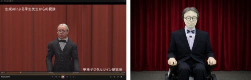 2025年度入学式で披露したバーチャル平生(左)と2026年度入学式で披露したAI平生ロボット(右)