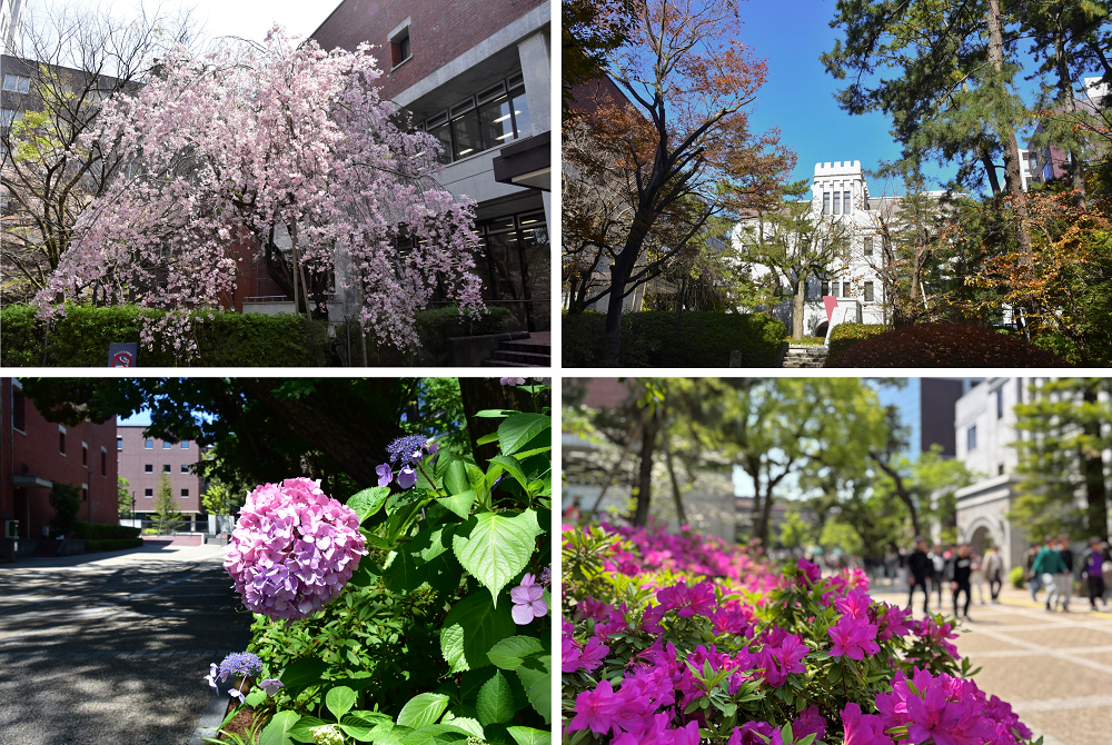 岡本キャンパスは、季節によって様々な植物が花を咲かせています。