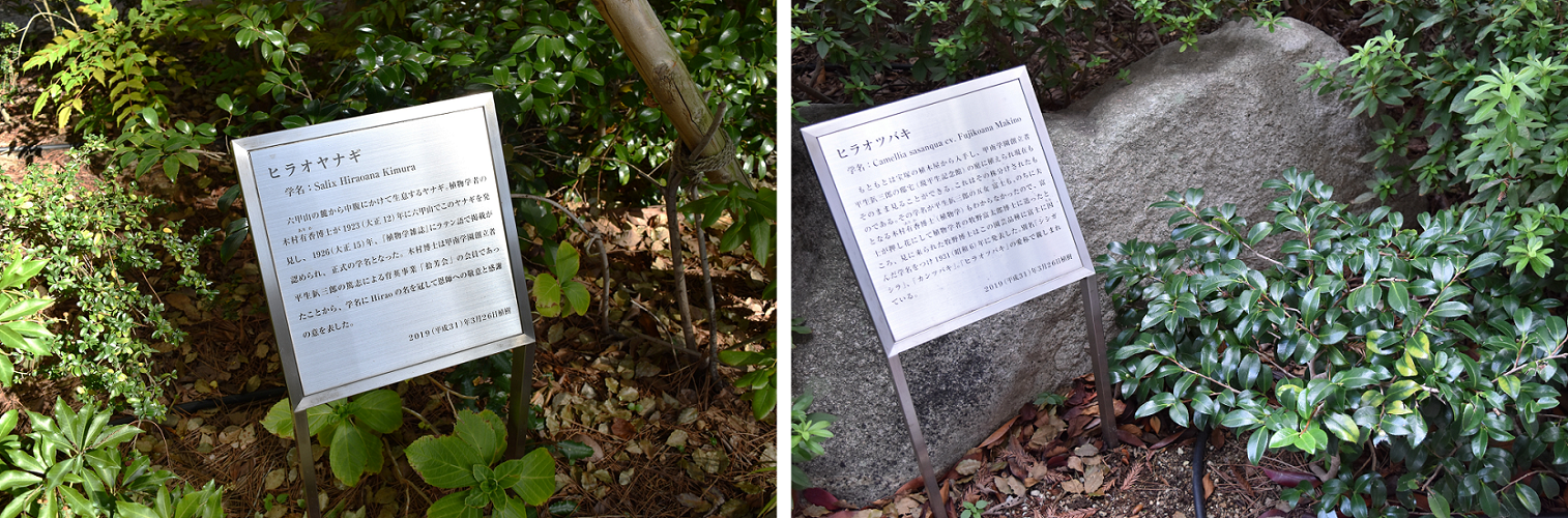また、甲南学園創立者 平生先生の名前が入ったヒラオヤナギやヒラオツバキも1号館前などに植えられています。