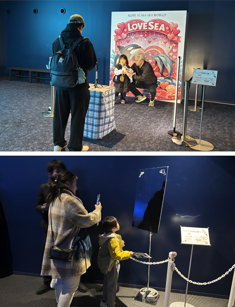 具体的には、2月7日〜15日の9日間、「テンションシャチあがり!“スマ”イルフォトクエスト」と題し、館内を回遊して「バレンタインフォトブース」や「ミラーシート」での撮影、そして「手つなぎフォト」などのミッションに挑戦してもらうイベントを実施しました。ミッションを2つクリアした初級者にはオリジナルグッズを、5つ全てクリアした上級者には神戸須磨シーワールドで人気の「オルカくじ」の無料チケットをプレゼントする仕組みにし、参加意欲を高める工夫をしました。