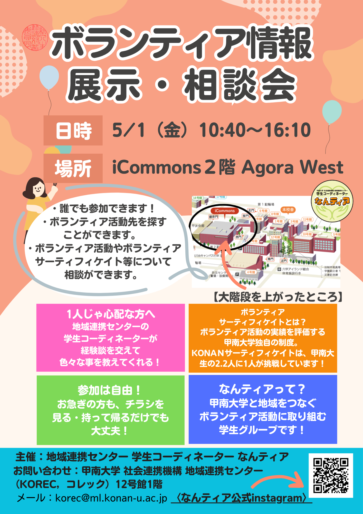 主 催◆地域連携センター(KOREC)学生コーディネーター「なんティア」