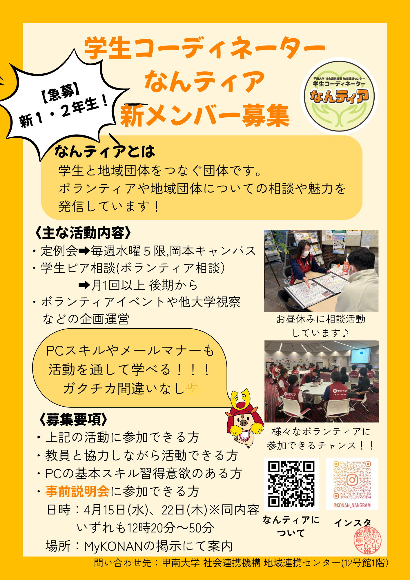 地域連携センター学生コーディネーター「なんティア」のメンバーを募集しています!