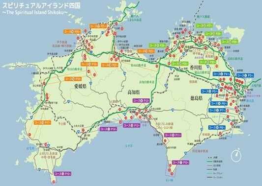 四国遍路マップ。そのうち徳島市には、5か所の霊場(れいじょう)がある