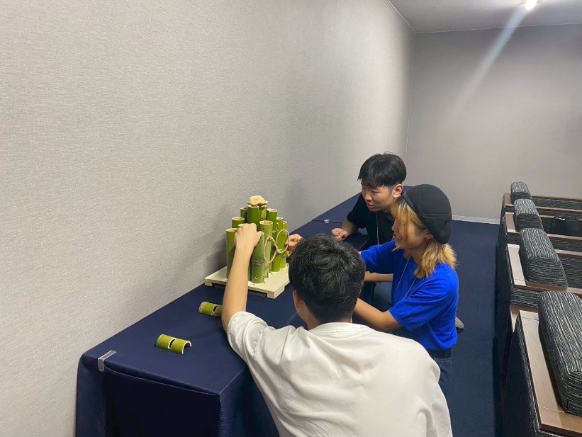 9月18日には、大阪・関西万博のガスパビリオンの応接室に、9月16~17日の夏合宿で制作した 竹のキャラクター展示物と紹介パネルを設置させていただきました。
