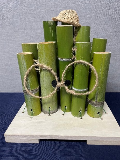 竹で作ったキャラクター展示物制作 竹モルック制作