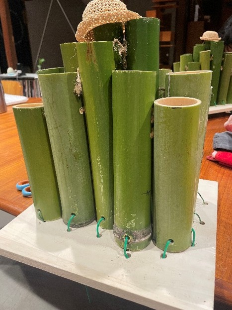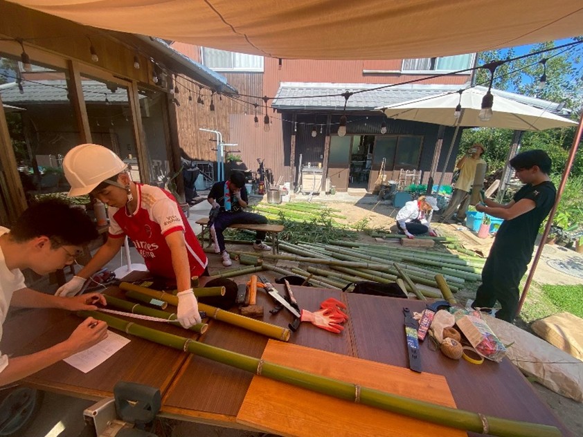 汗だくになりながら、何十本もの竹を切り出す大変な作業でしたが、新メンバーは電動ノコギリの扱いを習得し、展示物制作では電動ドリルも使えるようになるなど、着実に技術が身についてきています。