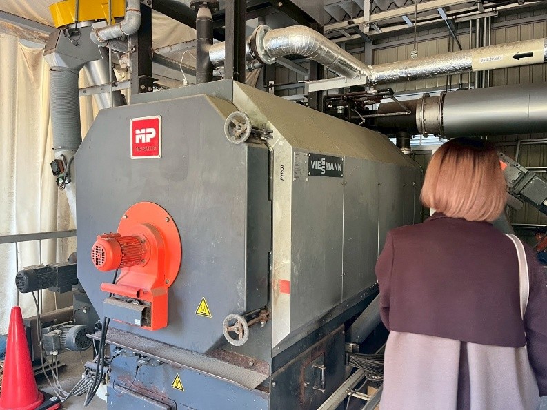次に、「ウェルネスパーク五色」では、竹を燃料として活用する”バイオマスボイラー”の運用実態を伺いました。竹の燃焼ではクリンカの発生が課題とされてきましたが、800度程度の低温で燃焼させることによって発生を抑制させていました。しかし、塩素由来のガスで煙突等の金属部が錆びやすくなるなど、導入後に顕在化する技術課題があったとのことです。さらに、設備は初期投資が大きく、竹チップ専用のボイラーが市場に少ないこと、メンテナンス頻度や修理コストが重いことも課題ということも分かりました。
