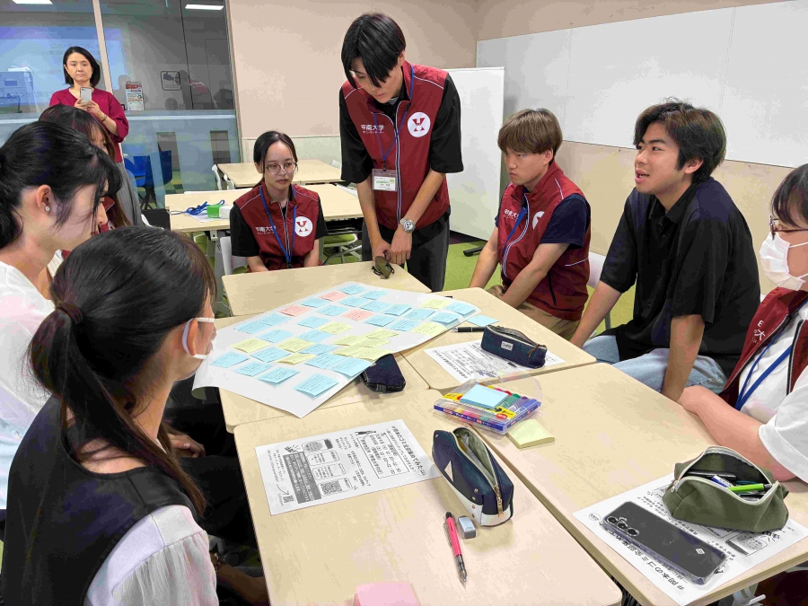 活動から3日後に実施した振り返りの会では、参加者同士で活動の感想を共有しました。なんティアメンバーがファシリテーターとなり、参加学生に付箋に意見や感想を書いてもらい、模造紙にテーマごとに貼り付けました。その後に、全体で模造紙を見ながら発表してもらいました。