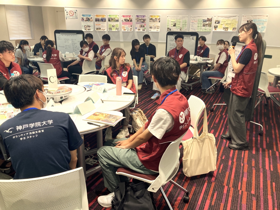 続いて、学生同士で交流を行いました。各代表から活動内容を紹介し合い、その後、お互いの制度の仕組みや、学生スタッフの育成のための取り組み、一般学生のボランティア活動の参加促進のための工夫など、設定されたテーマについて話し合いました。お互いの活動の共通点や違い、課題等を共有することで、自分たちの活動を見直すきっかけになりました。