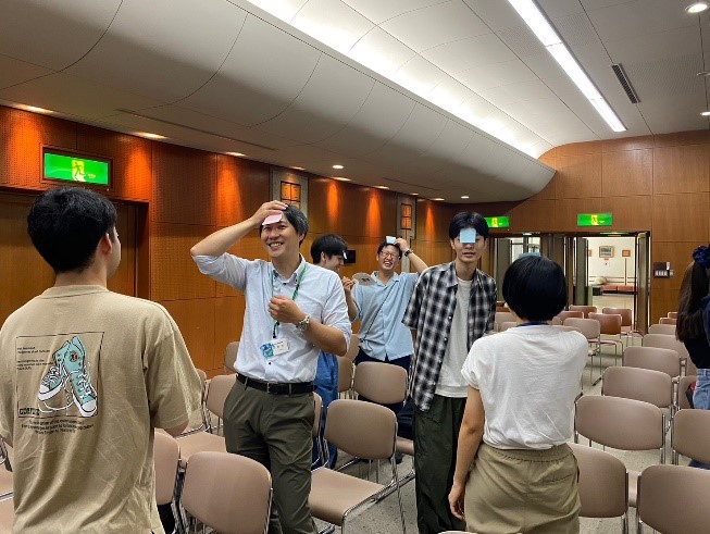 はじめに、アイスブレイクとして絵や文字を書いた付箋を近くの人と交換し、色々な人にヒントをもらいながら付箋に描かれているものを当てるといったことをしました。