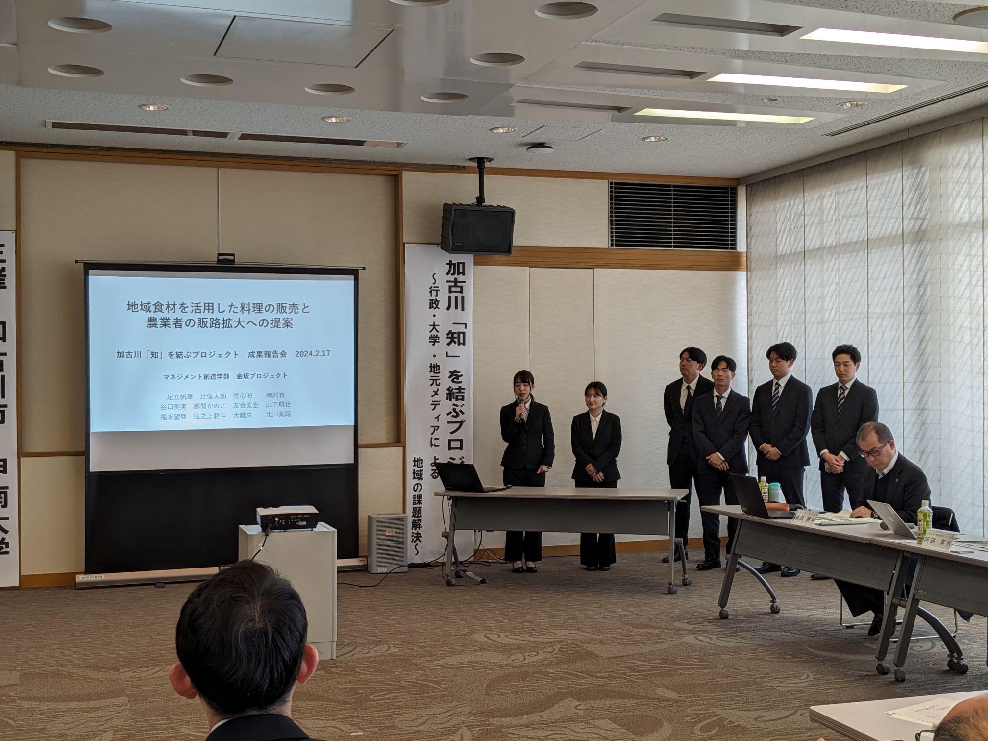 2024年2月17日(土)、加古川市役所10階 大会議室にて、加古川『知』を結ぶプロジェクト(主催:加古川市、甲南大学、協力:神戸新聞社)の成果報告会を開催いたしました。