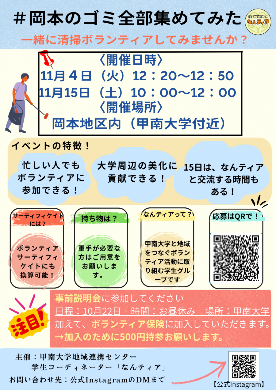 問合せ先◆地域連携センター学生コーディネーター「なんティア」公式InstagramのDMから