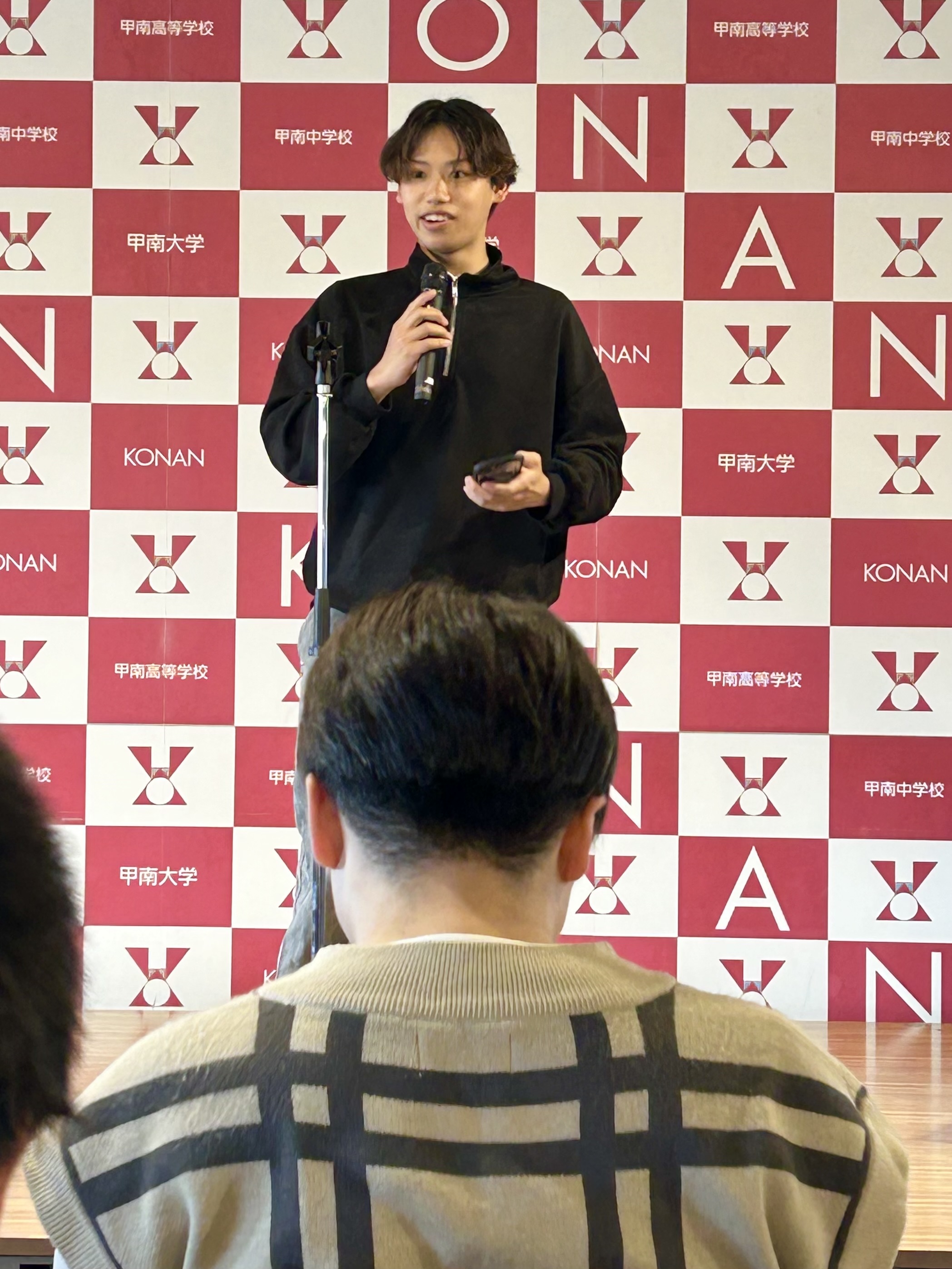 文学部人間科学科3年の肥前諒さんです。素晴らしいMCデビューでした!