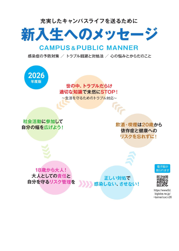 新入生の皆さんへ配布している資料の電子データを掲載しています。画像をクリックすると、電子データをご覧いただけます。充実した学生生活を送るために、お役立てください。