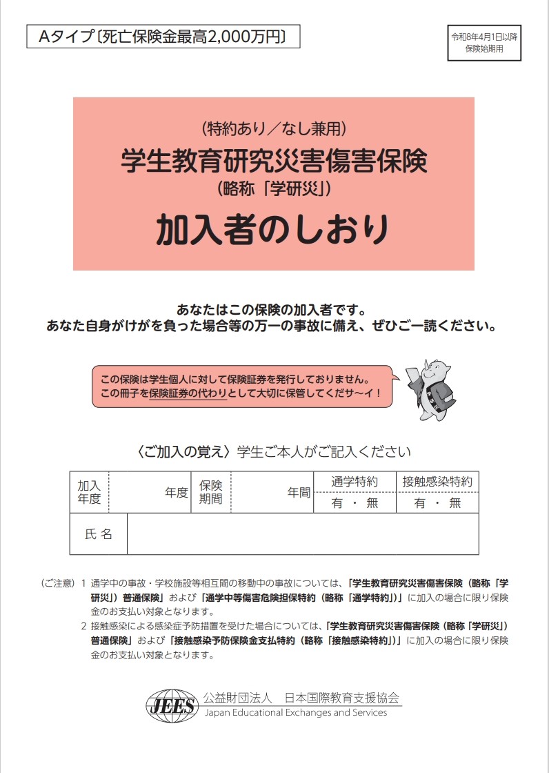 学生教育研究災害傷害保険(略称「学研災」) 加入者のしおり(保健室)
