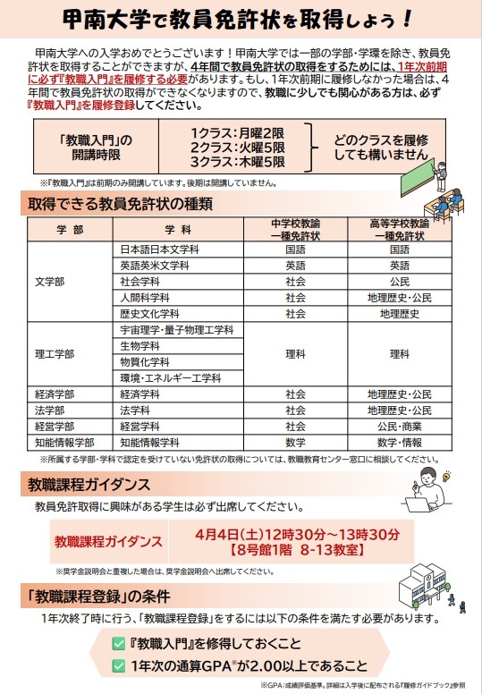 教員免許状を取得しよう!!(教職教育センター)