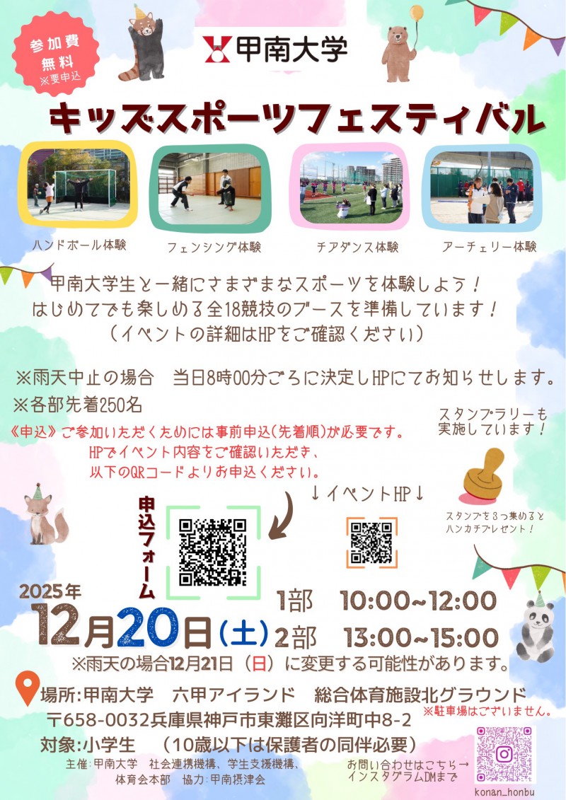 主催 甲南大学(社会連携機構地域連携センター・学生支援機構学生生活支援センター) 、甲南大学体育会本部