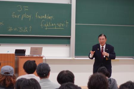 Fair Play(フェアプレイ)、Friendship(友情)、Fighting Spirit(挑戦心)――を紹介しました。水野氏は「成功する人に共通しているのは、伸び伸びとしていることです」と話し、学生たちに「自分らしく、のびやかに生きてほしい」とエールを送りました。